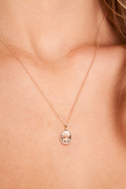 MORGANITE DIAMOND LARGE OVAL PENDANT