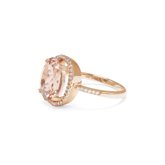 14K ROSE GOLD MORGANITE DIAMOND LARGE OVAL RING