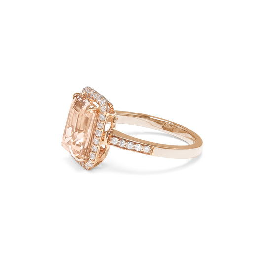 14K ROSE GOLD MORGANITE DIAMOND CUSHION CUT RING